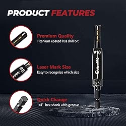 【Premium Titanium-Coated Construction】 Made from high-speed steel with a titanium coating, these VIX bits deliver outstanding wear resistance and cutting performance. The black phosphate finish provides additional rust and corrosion protection, ensuring long-term durability for all woodworking projects. 【Heavy-Duty Industrial Spring Design】 Built with an upgraded heavy-duty spring, this self-centering drill bit set withstands frequent use without deformation or fatigue. Perfect for professionals working on doors, windows, cabinets, and furniture installations. 【Accurate Self-Centering Performance】 The self-centering mechanism automatically aligns the bit to the hinge hole for precise pilot drilling every time — no need for an awl or manual marking. Achieve perfect screw alignment quickly and efficiently. 【Fast Chip Ejection for Smooth Drilling】 Features a double-sided chip removal hole that automatically clears sawdust as you drill. This prevents clogging and overheating, ensuring cleaner holes and smoother operation. 【Compact Storage & Replaceable Bits】 Includes 3 commonly used sizes — 3/32" (#6), 7/64" (#8), 1/8" (#10) — stored in a durable, portable case. The replaceable bit design makes swapping out or sharpening bits quick and easy, keeping your set ready for any woodworking task.