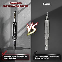 - The ColumPRO 3PCS Self Centering Drill Bit Set is engineered for precision, durability, and efficiency in woodworking and hinge installation tasks. Each bit is crafted from titanium-coated high-speed steel for enhanced strength and longevity, with a black phosphate surface that provides superior rust and corrosion resistance. The self-centering mechanism automatically aligns the drill bit with the screw hole, eliminating guesswork and ensuring perfectly centered pilot holes every time — ideal for hinges on doors, cabinets, and windows. An upgraded industrial-grade spring offers stable performance during repetitive use, while the dual chip-removal ports quickly clear debris for cleaner, faster drilling. This set includes three popular sizes (3/32", 7/64", and 1/8"), all stored in a compact case for easy organization and portability. With replaceable bits for extended use, this ColumPRO set is a reliable choice for both professional carpenters and DIY enthusiasts. ColumPRO — Precision Tools for Smarter Work.
