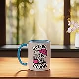 Fueled by Coffee And Coding. Fueled by Coffee And Coding. 11-ounce ceramic mug is dishwasher and microwave-safe, lead and BPA free Features glossy finish with accent colors on interior, handle, and rim of two-tone designs