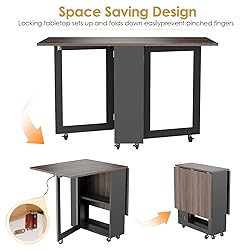 Space Saving Design: The multifunctional folding dining table folds completely for storage in tight corners, perfectly suited for apartments and compact kitchens Storage Solution: LotFun kitchen dining table incorporates a dual-tier storage rack to organize kitchenware and daily essentials, maintaining tidiness in your kitchen or living room Mobility Feature: Movable Dining table equipped with six high quality 360° swivel casters with brakes for effortless repositioning. Supports up to 200 lbs, allowing flexible placement anywhere in your home Multi-Functional Use: Unfolds as a kitchen island or dining table for 4-6 people; folds into a compact side table for easy storage beside the sofa to hold daily items Practical Construction: Simple assembly with detailed instructions. Features a durable frame structure. During initial assembly, do not fully tighten all screws—secure the frame first, then tighten screws in the final step