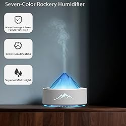 2-In-1 Humidifier & Essential Oil Diffuser: This large desktop spray humidifier uses an ultrasonic atomization system to release spray, which can quickly moisturize, soothe and dry. You can also add 3-5 drops of your favorite essential oil, which can quickly diffuse the fragrance and relieve your fatigue 7-Color LED Light: This volcanic lava aromatherapy machine has 7 color lights. When turned on, the ambient blue light automatically lights up, and then you can choose to keep the blue light or long press the power button to turn on the 7-color gradient ambient light. The light and fog of this diffuser can be independently controlled, so you can choose to turn off the lights while sleeping or use it as a night light Light and Soft Sound Operation: This fragrance diffuser adopts advanced noise reduction technology, with a noise level of less than 36dB, similar to the sound of a library. The light mist operation creates a superior peaceful environment, which will not affect your work, sleep or study in the slightest Safety Protection: This car humidifier aromatherapy machine is made of safe and high-quality ABS/PP material, with a built-in water shortage protection device that can automatically detect the water level and stop working when there is a lack of water. The base is made of soft silicone anti slip base, which can be stably prevented on the desktop, ensuring the safety of you and your family Creative Glacier Styling: This glacier aromatherapy machine combines moisturizing blue light with mountain and river shapes to create a realistic glacier effect. It not only humidifies and releases fragrance, but also serves as a great indoor decoration, making it perfect as a gift for family or friends Reliable Support: Each humidifier aromatherapy machine undergoes a water test after production to ensure its proper functioning, so you may notice a small amount of water in the water tank. Please rest assured, this is normal and not a second-hand product. If you have any questions about this humidifier, please feel free to contact us and we will reply and solve your problem within 24 hours
