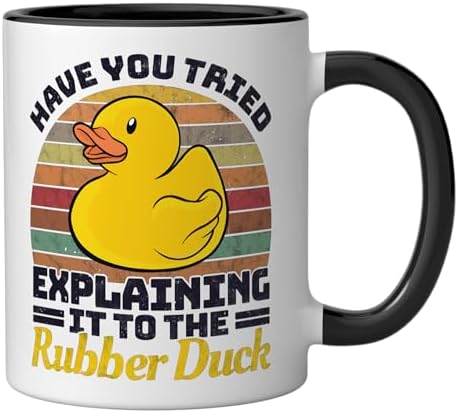 Programming Rubber Duck Software Developer Debugging Ceramic Mug, Black/White