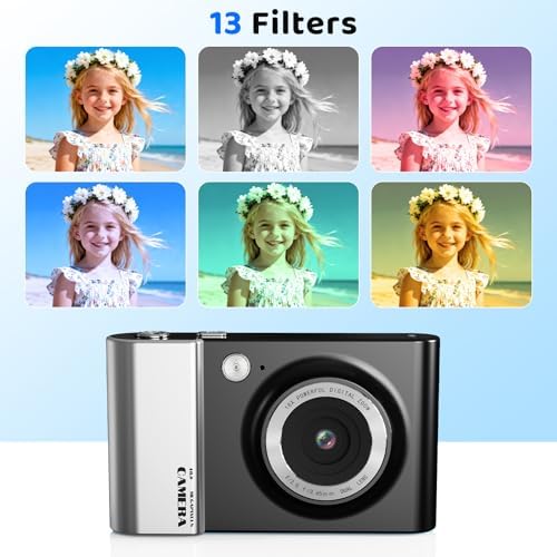 - 📸【64MP High-Resolution Photos & Creative Filters】Equipped with a high-quality CCD sensor, the kids camera has up to 64MP pixels and 12 built-in filters to spark creativity and make every shot stand out.