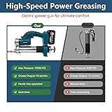 Powerful & Efficient: Powered by a pure copper motor, this electric grease gun delivers up to 12000 PSI, easily handling clogged fittings. High-speed pumping delivers 150-180 g/min for thick grease and 190-200 g/min for thin grease. No more manual pumping—maintenance is faster and easier. Three-Speed Control: Features three-speed settings (Fast/Slow/Pulse) to match different lubrication points. The front LED work light helps you work precisely in dim spaces like under vehicles, in engine compartments, or inside agricultural machinery, improving efficiency and safety. Dual Battery System: Kit includes 2×3000mAh lithium batteries, compatible with Makita battery platform. Includes a fast charger for continuous use by swapping batteries, eliminating range anxiety for long outdoor or shop jobs. Dual Loading Modes: Supports standard 14 oz grease cartridges and bulk/drum loading. Heavy-duty steel reservoir with T-handle makes loading easy. Compatible with NLGI #0, #1, and #2 greases for automotive maintenance to heavy-duty agricultural equipment. Complete Accessories: Ready to use: main unit, 500mm flexible hose, 145mm rigid tube, suction plate, 3 wrenches, quick-connect coupler, flat nozzle, grease scraper, dual batteries & charger, portable toolbox. Cordless design plus accessories lets you reach tight, hard-to-access lubrication points. Quality Guarantee: 100% quality guarantee with professional customer support. If you have any questions, our service team is ready to help, ensuring a smooth purchase and use experience.