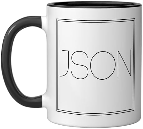 Json - Funny Minimalist Data Format Programming Lover Ceramic Mug, Black/White