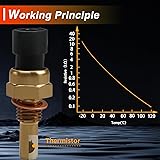 - 【Reliable Material】: This engine coolant temperature sensor operates on the principle of thermal sensitivity. As for the material of the thermo sensor, it uses high-quality materials and uses brass as the contact part for cooling water, making it more sensitive. Additionally, the plug part also uses nickel coasted copper material, allowing it to transmit signals more quickly. Its high-quality materials not only improve its work efficiency, but also greatly extend its service life.