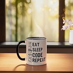 Eat Sleep Code Repeat Ceramic Mug, Black/White