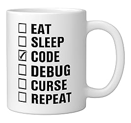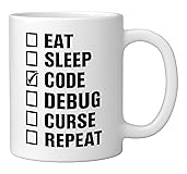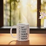 Eat Sleep Code Debug Curse Repeat Ceramic Mug, White