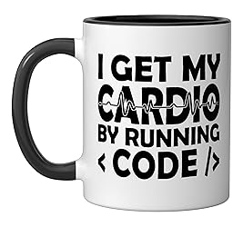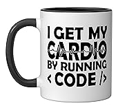 I Get My Cardio By Running Code Ceramic Mug, Black/White