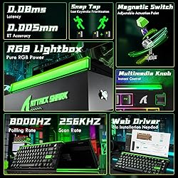Unmatched Speed&Precision for Esports:Dominate every match with true 8000Hz polling rate ,industry-leading 0.005mm RT sensing precision, and 0.08ms ultra-low latency.This ATTACK SHARK R85HE keyboard provide near-zero input delay and a true zero dead zone,engineered from the ground up to give you the ultimate precision,speed,and control advantage,allowing for pixel-perfect stops in FPS games and flawless combo execution in MOBAs.Your reactions are limited by your skill,not your gear Customizable Magnetic Switches&Advanced Gaming Functions:Equipped with custom high-frequency gaming chips and a 256K scanning rate,unleash your personal playstyle with our high-performance magnetic purple core switches.Use the software to individually adjust actuation points for each key and create hybrid ABA switch setups.Master games with Snap Key (SOCD) and Dynamic Keystroke (DKS), enabling one keystroke to trigger multiple actions for an unbeatable edge 16.8 Million Light Up Keyboard with Durable Cherry Profile PBT Keycaps:Command attention with 19 dynamic backlight modes and the unique front-facing RGB light bar,creating an immersive battlestation ambiance.Beyond the lights,it's built to perform and last.The high-quality Cherry profile PBT keycaps offer a textured,dry-touch feel that resists oils and shine,ensuring lasting legends and a consistent grip through marathon sessions Top-Tier HIFI Sound & Solid Build:Experience the crisp,satisfying "thock" with our global top-tier 5-layer sound-dampening system (PE Foam, IXPE, PET, Foam, Silicone),which is crafted to absorb every shred of metallic ping and rattle,delivering a pure,creamy "thock" that is as satisfying to hear as it is to type on.Combined with the rigid aluminum alloy plate,every keystroke is not only acoustically pleasing but also incredibly stable and consistent Plug-and-Play&Programmable NKRO ANSI Keyboard:Achieve instant compatibility with Windows and Mac.The intuitive web-based driver or downloaded software puts you in full control-remap keys,create complex macros,and fine-tune the stunning RGB lighting to match your mood.Featuring a convenient woven strap,compact 75% layout,volume roller,the R85HE is your perfect,portable weapon for tournaments and LAN parties