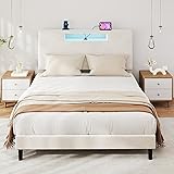 EVLIQUIL Queen Upholstered Bed Frame with LED Lights and Charging Ports, Super Large Velvet Headboard, Low Noise Mattress Foundation with Thickened Wood Slats, No Box Spring Needed Bed(Beige)