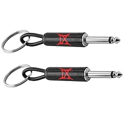 - Express your love for music with this sleek Ice Nine Kills Guitar Plug Keychain 2-pack. Each keychain features a realistic guitar plug design with the iconic logo in striking red against a black metal body. The cylindrical shape and standard size make it comfortable to carry, while the durable metal construction ensures long-lasting use. These keychains combine style with functionality, measuring 4.0 inches in length and 0.5 inches in width. The set includes two identical guitar plug keychains, each secured with a sturdy keyring closure. Perfect for musicians, band enthusiasts, and collectors alike, these keychains add a touch of rock n' roll to your everyday carry. The distinctive design element adds an extra layer of appeal for metal music fans. Each keychain weighs just 1 ounce, making it lightweight yet substantial enough to feel quality-made. Whether attached to your instrument case, gear bag, or everyday keys, these guitar plug keychains serve as a stylish accessory that showcases your musical passion.