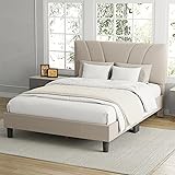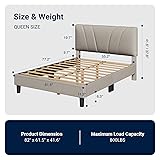 ADJUSTABLE HEADBOARD: This upholstered bed frame features an adjustable headboard that ranges from 37.8"–41.6", fitting mattresses 8"–12" thick. Choose your ideal height for comfort and support whether you prefer a sleek modern look or a cozy layered setup. STYLISH AND COMFORTABLE: Wrapped in premium linen fabric with dense foam padding, this bed frame blends modern simplicity with soft comfort. The sleek silhouette and neutral tones — Beige — complement any décor, adding an elegant and inviting touch to your bedroom. NOISE-FREE DESIGN: Designed with noise-reducing pads and anti-slip floor protectors, this frame ensures quiet stability while protecting your floors. The Velcro-attached wooden slats keep everything securely in place, minimizing movement and preventing squeaks for a peaceful sleep. EASY ASSEMBLY: All parts, tools, and instructions are clearly labeled for simple installation. With the help of two people, you can assemble the bed in about 20 minutes. No additional tools or box spring required. DURABLE SUPPORT: This bed frame is built with a sturdy wooden frame, 10 solid wood slats, and 10 reinforced legs, providing reliable stability. It can support up to 800 lbs, ensuring long-lasting durability and a secure sleep experience. Made from FSC-certified wood, it combines strength with sustainable materials.