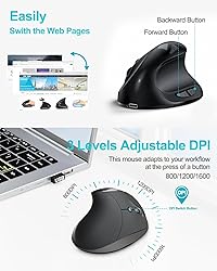 Ergonomic Design for Small/Medium Hands: Wrist pain from your traditional mouse? Or had a bad fit from other bulky ergonomic ones? Your solution starts here. If your palm is under 7.5 inches (19cm), this is YOUR ergonomic mouse for small and medium hands. This vertical mouse cradles smaller hands naturally, promoting a more relaxing forearm posture to reduce strain and turn long workdays from painful to productive. No more discomfort. Embrace all-day comfort for work and play Plug & Play, Super Easy to Use: Say goodbye to wired or Bluetooth pairing hassles! Our small handed wireless ergonomic mouse delivers a stable 2.4G connection up to 33 feet—just plug the USB-A receiver in and you're ready to go. This wireless carpal tunnel mouse is ideal for a seamless setup at your home, office or in a conference room, letting you focus on your work. Note: It doesn't support Bluetooth or USB-C ports Long-Lasting Rechargeable Battery: No need change batteries! This small sized carpal tunnel mouse features a powerful 500mAh battery and modern Type-C charging—just 3 hours of charging delivers up to 150 hours of smooth use. ( Note: It enters sleep mode after 20 minutes of inactivity, simply press any button to wake it up. ) This rechargeable ergonomic mouse keeps you efficient, saving the time and cost of purchasing batteries 3 Adjustable DPI & Quick-Access Thumb Buttons: Easily adjust DPI in a second. This vertical mouse wireless for laptop offers seamless control for all your work. The convenient thumb buttons let you zip forward and back between web pages easily, while the 3-level adjustable DPI (800/1200/1600) lets you instantly switch from spreadsheet editing to smooth scrolling. The wireless ergonomic mouse elevates your productivity, enjoying every click and scroll Wide Compatibility: Your Lekvey wireless ergonomic mouse is compatible with various systems including Windows (2000/ XP/ 7/ 8/ 10/11 ), Mac OS, and Linux. Simply plug the 2.4G receiver into any USB-A port on your laptop, Mac, PC, Notebook, desktop, and enjoy all-day comfort instantly with Lekvey 2.4G wireless ergo mouse Package Includes: 1×Lekvey Rechargeable Wireless Small Vertical Ergonomic Mouse ( Size: 4.1" x 2.75" x 2.38"; recommended for small or medium hands), 1×2.4G USB Receiver (in the bottom of the mouse), 1×150cm Type-C Charging Cable, 1×User Manual