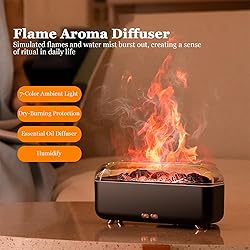 Simulated Fireplace Design & Multifunctional: This fireplace style aromatherapy machine combines simulated flame lighting with delicate water mist and aromatherapy, showcasing a warm atmosphere of water and fire blending. It humidifies and expands your fragrance while presenting a visual feast Ultrasonic Fragrance Expansion & Humidification: This essential oil diffuser uses ultrasonic atomization technology to release ultra-fine and greasy mist without wetting the desktop. Adding 3-5 drops of your favorite essential oil to water can help you moisturize and achieve long-lasting fragrance expansion. It is very suitable for home, office, yoga, and other relaxation places 7-Color Ambient Lighting: This desktop diffuser features 7 adjustable LED lights, allowing you to set different lighting modes according to your mood: 7-color loop and monochrome fixed. The flame effect of the essential oil diffuser creates a warm atmosphere, while other favorite lights create warm and romantic colors for your evenings Timer Function & Safety Protection: This aromatherapy humidifier has a water tank capacity of 300ml, maintaining an atomization volume of 18-25ml/H. Therefore, you can use it continuously for 12-15 hours. When there is a lack of water, it will automatically power off, meeting your needs for continuous hydration and fragrance expansion while ensuring your safety. In addition, you can also set the 2H/4H/6H timer as needed to adapt to your schedule Ideal Gift: This volcano humidification aromatherapy machine integrates multiple functions such as aromatherapy, humidification, 7-color simulated flames, indoor decoration, etc. It is easy to operate and safe to use, making it an ideal gift for friends, family, and colleagues on holidays or birthdays, Christmas, Halloween, Thanksgiving, New Year's Day, and other anniversaries Reliable Support: Each humidifier aromatherapy machine undergoes a water test after production to ensure its proper functioning, so you may notice a small amount of water in the water tank. Please rest assured, this is normal and not a second-hand product. If you have any questions about this humidifier, please feel free to contact us and we will reply and solve your problem within 24 hours