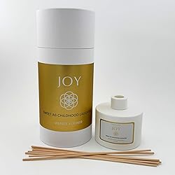 MANIFEST JOY, HAPPINESS AND POSITIVITY – JOY brings a bright, uplifting energy to your space. This intention-infused diffuser features a refreshing fragrance blend of Champagne, Tangerine, Bergamot, and vibrant Berries, softened with cozy Cashmere & Musk, crafted to elevate your mood, spark lighthearted moments, and fill your environment with warmth, optimism, and playful joy. CLEAN, CONSCIOUS INGREDIENTS – Formulated with care using essential oils and luxury fragrance, this diffuser features a phthalate-free, environmentally friendly base for a long-lasting scent experience that supports your wellness. ELEVATED DESIGN – Each diffuser set comes with a sleek white ceramic vessel (with an elegant, minimalist label featuring a Sacred Symbol that represents vitality, expansion, and the joyful flow of life as well as a bundle of rattan reeds that gently disperse fragrance for a continuous, lasting scent. HANDMADE WITH PURPOSE – Each diffuser is handmade by a woman artisan building a brighter future for herself in the U.S. after living for years as a refugee. Your purchase helps support her path forward. GIFT-READY AND MEANINGFUL – Arrives in a thoughtfully designed box with a guided ritual card to help you set your intentions. A perfect gift for birthdays, celebrations, or any moment that deserves to be marked with joy.