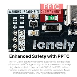 - Empower Your Prototypes with LONELY BINARY Breadboard Power Supply Modules (3-Pack)The LONELY BINARY Breadboard Power Supply Module is a compact and versatile power adaptor designed for electronics prototyping on solderless breadboards. This 3-pack plugs directly into the power rails of your breadboard (sold separately) to provide stable voltage for your circuits, eliminating the need for messy wiring or external adapters. Ideal for hobbyists, students, and makers working on quick prototypes, testing ideas, or STEM projects with development boards like Arduino, Raspberry Pi, Pico W, and ESP32.Key Features & BenefitsSwitchable Voltage Outputs: Select between 3.3V and 5V to match your project's needs. Rated at 5V/1.5A and 3.3V/1A, with built-in 500mA PPTC fuses for overload protection.Type-C Output & Input: Modern USB Type-C port for convenient power delivery from any 5V source—perfect for integration with laptops or hubs.Safety and Convenience: Resettable fuses safeguard components; LED indicators (red for 5V, blue for 3.3V) for status monitoring. Note: Install on the correct end of the breadboard to ensure proper polarity.Compatibility: Works seamlessly with ESP32 development boards, sensors, LEDs, and more for digital/analog projects.SpecificationsOutput Voltage: 3.3V / 5V (switchable)Output Current: 3.3V @ 1A, 5V @ 1.5A (500mA protected per module)Input Voltage: 5V DC via USB Type-CAdditional: No batteries included; focuses on direct power for stationary setups. Slight voltage drop (e.g., ~4.8V on 5V line) doesn't affect most ICs.Pro Tip: For projects needing both voltages, set up separate breadboards from this pack. Whether you're a beginner or seasoned maker, this 3-pack is your go-to for reliable, protected power in DIY electronics. Order now and bring your ideas to life!