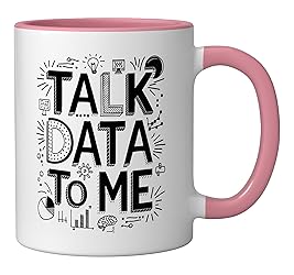 Talk Data To Me Great data science design for people working as data analyst. Perfect science data analysis accessories for statisticians and data scientist. 11-ounce ceramic mug is dishwasher and microwave-safe, lead and BPA free Features glossy finish with accent colors on interior, handle, and rim of two-tone designs