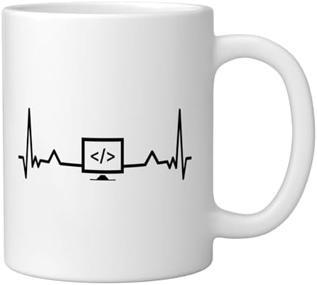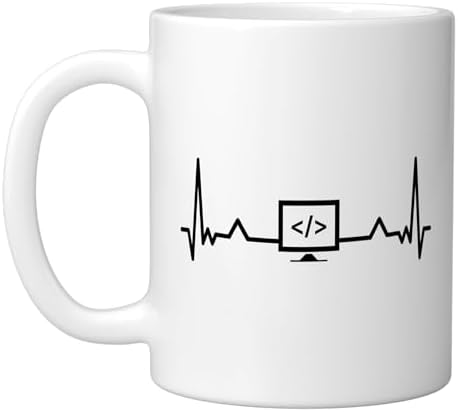 Programming Heartbeat Coding Developer Ceramic Mug, White