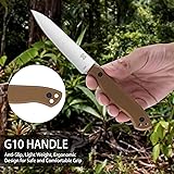 Compact Fixed Blade Knife, 3.9" Blade Camping Knife with Adjustable Kydex Sheath and Clip, Small fixed blade knives Stainless Steel and G10 Handle for Outdoor Survival, Camping, Hiking(Coyote Brown)