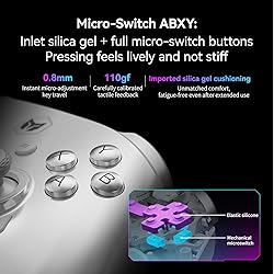 【Top-Class Capacitive Joystick】Rainbow3 employs MOJHON custom capacitive joysticks, achieving outstanding performance parameters: 8000-step resolution, 0.0005-second latency, 100μA operating power consumption, support for up to 16-bit digital coordinates, and a 2000Hz report rate. The capacitive joystick employs a non-magnetic induction design, completely eliminating magnetic interference issues common in traditional Hall effect controllers. IIC output requires no ADC sampling, enabling more direct and rapid response. An auto-calibration function detects the center point and corrects for drift. The joystick offers three resistance levels: low, medium, and high. 【Full Mechanical Micro-Switch Buttons】The 16 main keys use micro-mechanical switches, with keystroke force adjusted to maintain absolute comfort, offering esports-level response speed far beyond ordinary keys. MOJHON's second-generation mechanical keys feature imported silicone paired with precise micro switches, and the patented 'X-lever' integrated shoulder key structure provides an exquisitely refined operational feel. With extremely low latency and very high response speed, they are perfect companions for FPS and action games. The pursuit of a professional gaming controller remains unwavering, bringing players a better sense of immersion and satisfaction. 【Multi-Function Three-Mode Gaming Controller】Recommended Rainbow 3 Wireless Controller: Custom capacitive joysticks, 8000-level resolution, 2000Hz polling rate wired/wireless connectivity, 1000Hz high-precision 6-axis gyroscope, 16 mechanical micro switches, 14 independent RGB lights, Hall/ Micro Dual Triggers, Bidirectional Asymmetric Motors, Ergonomic Design, Suspension-Style Magnetic Base, 3.5mm Wireless Audio, Adaptive Calibration Function, Turbo, Marco, 255-Level Adjustable Vibration, H-Bridge Chip, Anti-Deadzone Algorithm, Keyboard Mapping, Screenshot, 3 Sets of Joysticks, 4-Way and 8-Way Directional Pad, ELITE App 4.0. Compatible with PC Windows/Android/iOS/Switch/Switch2 platforms. 【14 Independent RGB Lamp Groups】Inherits the legacy of the previous generation's Rainbow Classic, truly living up to its name! The number of RGB light beads has increased to an impressive 14, delivering an AURORA effect. The system not only features diverse built-in lighting effects, but players can also use the APP to customize the color of each light bead, create lighting effect presets, and share them with friends. Powerful lighting customization creates an exceptional eSports atmosphere, making your desk even more stunning. 【2000Hz Polling Rate Wired/Wireless Connection】Featuring MOJHON's proprietary algorithm and NearLink chip, inheriting the competitive DNA of BIGBIG WON. Rainbow 3 elevates the controller polling rate ceiling to professional levels, achieving 2000Hz for both wired and wireless connections. With ultra-low latency of 0.0005 seconds and robust connection stability, it delivers the ultimate control experience across all games, from FPS to AAA titles. It enjoys overwhelming support from pro gamers. 【1000Hz High-Precision 6-Axis Gyroscope】 Combining MOJHON's latest in-house developed 4th generation GYROCON technology with the powerful connectivity of the NearLink chip, the Rainbow3 Gyroscope achieves an astonishing 1000Hz refresh rate. Analog controls during FPS gaming deliver an experience that feels like you're right there in the action. 【Switchable Hall/Micro Switch Trigger】Rainbow3 features physical dual triggers. Switch between Hall linear and micro switch instantaneous modes anytime. Purchasing Rainbow3 is equivalent to gaining the shoulder button feel of both the Rainbow2pro and BLITZ2 controllers. The 256-step 8mm Hall linear stroke provides precise throttle control in racing games, while the 0.8mm micro-switch ultra-short key stroke enables instant firing in FPS games. This controller was born for gaming.