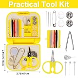 【Compact and Portable Design】When you receive this sewing kit, you'll be amazed by its compact size. It fits neatly into your suitcase, purse, or pocket. Simply open it up and you're ready to go—everything is clearly organized at a glance. 【Quality】Made with durable alloy and sturdy plastic, these tools are built to last. The compact case keeps everything organized and secure, so you’ll never lose a needle or thread again. 【Essential Tools for Sewing】Whether your clothes have a hole or a button has come off, it can help you fix these problems. It contains scissors, needles, thread, pins, buttons, and other basic sewing tools to meet your essential sewing needs. 【Widely Used】This portable sewing kit can be used in any situation.Keep one in your craft room, laundry area, or kitchen drawer for quick repairs on clothes, curtains, pillows, and more.Slip it into your suitcase, backpack, or purse—never worry about a torn shirt or loose button while traveling. 【DIY Sewing Projects】Want to make some knitted toys or clothing? A well-equipped sewing kit can give you a wonderful experience.