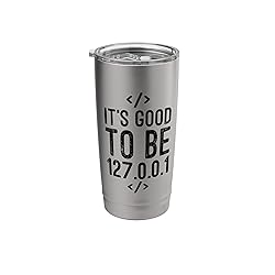 It's good to be 127.0.0.1 gift idea for every developer, hacker, coder and programmer that do programming, coding, debugging table. If you study information technology or science, tell them about the bits and bytes. Programmer It's good to be 127.0.0.1 Computer Science Nerd is a perfect gift for everyone who loves coding and developing new computer langues. Perfect as a birthday or christmas gift for an engineer, programmer or someone who loves technology. Dual wall insulated: keeps beverages hot or cold Stainless Steel, BPA Free Leak proof lid with clear slider