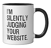 I'm silently judging your website funny for programming expert coder, software developer, computer programmer and IT Professionals. Funny web developer judging website in vintage text. 11-ounce ceramic mug is dishwasher and microwave-safe, lead and BPA free Features glossy finish with accent colors on interior, handle, and rim of two-tone designs
