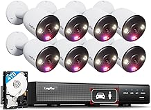 - Features4K Ultra HD Resolution: Capture every detail with 8MP cameras that deliver crystal-clear 4K UHD footage, ensuring superior image quality both day and night.16-Channel NVR: Supports up to 16 cameras, providing comprehensive coverage for homes, businesses, or larger properties.Full Color Night Vision: Stay secure 24/7 with infrared led flush lights to get 4K full color night vision, covering up to 100ft.Smart AI Motion Detection: Intelligent AI-powered detection for humans and vehicles to minimize false alarms.Remote Viewing: Access live feeds and playback recordings anytime, anywhere using the LongPlus app or web interface.Expandable Storage: Includes a pre-installed 2TB hard drive, with support for up to 10TB for continuous recording.PoE Technology: Power over Ethernet (PoE) simplifies installation, requiring just one cable for power and video.IP67 Weatherproof Design: Durable IP67-rated cameras built to withstand harsh weather conditions for reliable outdoor performance.Multiple Alarm Options: strobe light alarm, Sound Alarm, LED Flush Lights.SpecificationsVideo Resolution: 4K Ultra HD (3840 x 2160 pixels).Camera Lens: F=2.8mm, f1.6 Wide Angle Lens.Field of View:132°.Number of Channels: 16 Channels (NVR).Storage Capacity: Pre-installed [4TB] HDD, expandable up to 10TB, also support cloud storage.Night Vision Range: Up to 100 feet (IR/Color).Audio Support: 2-Way Audio.AI Detection: Human, Vehicle Detection.Ingress Protection: IP67 Weatherproof Rating.Compression: H.265+ Video Compression.Power Supply: PoE (Power over Ethernet).Remote Access: Mobile App, Web Interface.Connectivity: Wired (Ethernet).Playback Options: Max 4CH @ 1080p (20fps).Alarm Options: Siren, LED Flashing Lights, strobe light alarm.What’s in the Box?8 x 4K UHD Cameras1 x 16 CH PoE NVR (Pre-installed 2TB Hard Drive).1 x 6.56ft HDMI Cable1 x 48V DC 1.875A Adapter1 x 3.28ft Ethernet Cables16 x 60ft Ethernet Cables1 USB MouseInstallation AccessoriesQuick Setup Guide