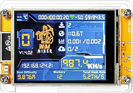 Unlock the future of crypto mining with the NMMiner NerdMiner V2, a high-performance Bitcoin miner designed for efficiency, convenience, and versatility. Powered by an optimized algorithm, this crypto miner delivers an impressive 980KH/s hashrate, boosting your lottery-winning probability by 420% compared to previous models. Whether you're a seasoned miner or a crypto enthusiast, this mining machine offers a seamless and rewarding experience. This NM Miner has been upgraded to use ESP32-WROOM-32 module, supporting Wi Fi and BLE. At present, the NMMiner has achieved a higher Harshrate of 1000KH/s. Plug & Play Mining Solution Unlock your mining potential in under a minute with our pre-installed software. Simply connect to a USB power source, and embark on your journey.