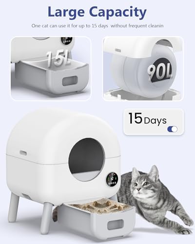 - Generous 90L Capacity: Large 90L drum and 15L waste bin support cats 2.2–33 lbs. Lasts up to 15 days between cleanings—perfect for multi-cat homes and busy owners.