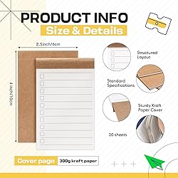 Outstanding Quantity: this set includes 100 pack notebooks, each with 30 pages; The ample quantity meets the needs of various daily scenarios, long-term stocking, and sharing, offering exceptional value; Suitable for home, office, and school use Portable Notebooks: stay organized on the go with our daily to do list notepad; Measuring at just 2.5 x 4 inches, these portable notepads fit perfectly in any bag or pocket, ensuring that you have your list notepads handy wherever your day takes you, ready to capture every thought and task Durable Materials: the cover of our portable notebook is made of sturdy kraft paper, providing a solid and durable feel; The inner pages are made of nice paper, ensuring smooth writing and minimal ink absorption; Suitable for fountain pens, pencils, and ballpoint pens, the writing becomes smoother with use Wide Range of Use: the checkmark design is suitable for managing daily tasks, setting goals, creating shopping lists, wish lists, and more in work, study, and family life; It's a powerful tool for improving efficiency and organization Nice for Personal Use and Gifting: as a nice daily notebook set, this thoughtful and practical gift is suitable for classmates, teachers, colleagues, or family members; Help them better manage their schedules, improve their focus, and increase their work and study productivity