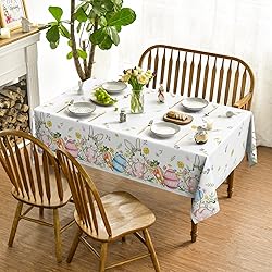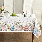 Horaldaily Easter Tablecloth 60×84 Inch Rectangular, Bunny Rabbits Carrot Easter Egg Daisy Butterfly Watercolor Washable Seasonal Table Cover for Party Picnic Dinner Decor