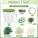 Hoolerry 2 Sets DIY Beaded Plant Kits 2.5 Inch Mini Beads and Planter Making Kit Crafts Desktop Vase Decor Green Beads Succulent Flower Kit Ornaments for Home Decor Plants Lover Handmade Gifts (White)