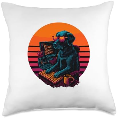 Retro Dog with Keyboard Coding Software Developer Throw Pillow