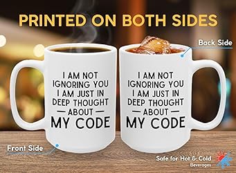 - Crafted with a sturdy handle and a durable, long-lasting print image, this mug is built to withstand the rigors of daily use. No need to worry about fading or peeling – this print is here to stay. Plus, it’s microwave and dishwasher friendly, making it super convenient for your busy lifestyle. And for those who love their packaging, this mug comes with a box, making it ready for gifting. Looking for gifts for software engineers or computer programmer gifts? This mug hits the mark. It's also a fantastic choice for computer coding accessories, computer nerd gifts, or a computer science mug. With its humorous and geeky vibe, it’s a standout among gifts for coders and cool gifts for computer geeks alike. If you're searching for gifts for computer scientists or a coding gift that will be appreciated, look no further. This mug isn’t just for programmers; it’s also a hit with cat lovers. Imagine sipping your morning coffee or tea while your feline friend keeps you company. It’s a small joy that makes a big difference in your day. And if you’re buying for someone else, this mug makes wonderful coder gifts, computer science gifts, and even gifts for computer science majors. Think of it as a versatile present that caters to a broad range of interests. For those who love accessorizing their workspace, this mug pairs well with laptop programmer stickers and other computer coding accessories. It's also an excellent addition to any collection of computer coding gifts or programming mugs. Whether you're looking for coding gifts for men or just a cool coding coffee mug for yourself, this mug delivers. So, if you’re on the hunt for a computer genius mug that’s both fun and functional, or you need a thoughtful gift for programmers, consider this Programmer Coffee Mug 15oz Black. It’s a unique blend of humor, quality, and practicality that’s sure to delight anyone who receives it.