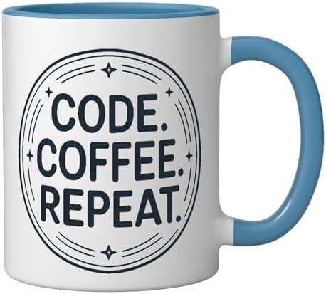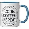 Code Coffee Repeat Programmer Developer Coding Humor Ceramic Mug, Blue/White
