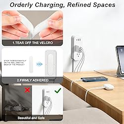 【Electrical Outlet Extender】Adjustable Outlet Extender with Rotating Design Maximize your charging flexibility with this extendable outlet extender, Electrical Outlet Extender From 22" To 34", Rotates 180° Access Hard-to-Reach Outlets for Nightstands, Sofa, Desks and More 【Rotates 180° 】Behind Couch Outlet Extender Rotates 180° Placement vertically, horizontally, or anywhere in between Hard-to-Reach Outlets are easily accessible and usable without having to move heavy furniture, Ideal for use behind furniture or in small spaces such as nightstands, sofas, and desks. Its extendable feature reduces cable clutter, while the rotating base minimizes tangling 【Premium Quality Material】Extendable and Rotating Flat Outlet Extender Built with ABS+PC high strength composite fireproof material and overload protection, power socket Electrical Outlet Extender Stick safety. FCC certified, PROVIDING durability & safety. Suitable for any indoor place, especially bedrooms, bathrooms, it is a good choice for families, Its heat resistance and heat deformation temperature can reach 110~130℃, which is higher than the common ABS materials on the market 【Easy To Install】Vertical Electrical Outlet Extender Tool-Free, COMES WITH DAMAGE FREE VELCRO COMMAND STRIPS Attaches securely to the wall with no damage, no mess, no tools. renter-friendly, residue-free mount. Perfect for painted walls, tiles, or wood surfaces without drilling or mess 【Versatile Charging 】Equipped with 2 USB-A, 1 USB-C, and 2 AC outlets to power multiple devices at once and the USB port supports 5V 2.4A outputletting you charge phones, laptops, and small appliances simultaneously, Eliminate messy cables and free up outlets on your wall, keeping your desk, bedside table, or workspace clean and efficient