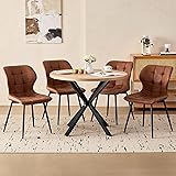 Lecafur HL 39" Round Dining Table Set for 4, Mid Century Kitchen Table with 4 Synthetic Leather Upholstered Dining Chairs for Dining Living Room Apartment Space Saving