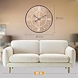 Silent & Accurate Timekeeping: Enjoy a truly silent wall clock with no ticking noise, ideal for quiet environments like offices, bedrooms or study areas. Premium quartz movement ensures precise timekeeping and runs on one AA battery (not included) for reliable, long-lasting performance. Iron & Wood Craftsmanship: Made with a solid iron metal frame and durable MDF wood dial, this clock boasts quality materials and rustic charm. The metal-and-wood construction offers both industrial sturdiness and farmhouse warmth, ensuring a long-lasting piece that doubles as functional wall art. Easy Installation: Hang this clock in minutes with the pre-installed keyhole hanger and included mounting hardware. No complicated assembly required – simply insert an AA battery, set the time with the adjustment dial, and mount it securely on any wall for an instant style upgrade. Decorative Versatility: A classic Roman numeral display and black hands lend a timeless touch that complements various interior themes. The design blends vintage, industrial, farmhouse, and modern décor styles, making it a striking focal point in living rooms, offices, classrooms and more – wherever you want a tasteful accent that stands out. Two Size Options: Available in Large 24-inch or Oversized 30-inch diameters to perfectly suit your space. Choose the 24” for smaller rooms or the eye-catching 30” for open areas and big walls. Both sizes create an impressive statement piece that’s easy to read from across the room. Service Commitment - Should you encounter any quality issues while using your wall clock, please feel free to contact us at any time. We will respond within 24 hours.