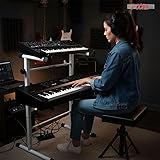 【Small Footprint】With its compact design, this product allows you to add support for an additional keyboard to a keyboard stand, keeping multiple keyboards within reach without needing separate stands. This creates an organized workspace. 【Ergonomic】Designed with ergonomics in mind, this 2-tier keyboard stand features an adjustable tilt angle that locks in place, ensuring comfortable and reliable positioning for keyboards, electric pianos, MIDI controllers, synthesizers, and organs weighing up to 60 pounds. 【Adjustable】The length of the piano keyboard stand adjusts from 19.5" to 30" to fit various keyboard stands and instruments. The base seamlessly and securely connects to the main stand's tubing for enhanced stability and flexibility. 【Compatible】This product is designed for X-style keyboard stands and can be added to a two-tier setup. Included plugs seal the main stand's tubing for a clean look when the second tier is removed. 【Professional】With a durable black finish that resists chips and scratches, this double keyboard stand maintains a sleek look, blending seamlessly into any stage or studio setup.