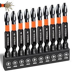 - Product description Impact Tough #2 Phillips Bit — Impact Shock Absorbent Zone stands up to impact drivers. It can be handle a new generation of high torque impact drivers.more powerful than ordinary cheap phillips head screwdriver set, longer life.Standard Sizes--These 10 packs of 2 Philips Bits, fit wood screws from #5 to #9, metric machine screw sizes M3.5, M4, M5, and SAE machine screw sizes #5 to #10. 1/4" hexagonal handle, compatible with most electric drills, suitable for many home work and industrial applications.Magnetic Phillips Bit--These high hardness & magnetic Phillips bits, Heat-treated manufacturing for stronger bit,magnetized sufficiently that screws can be easily fixed and removed, do not decay magnetic after multiple uses, ensuring long-lasting.TS2 Alloy Steel--using high quality solid tool steel TS2 alloy steel, wear resistance and strong impact resistance, hardness reaches 63HRC, can be used for high intensity conditions, Phosphorized black surface to prevent rust.1/4 Hex Shank — 1/4 inch hex shank, fit for electric screwdrivers, hand screwdrivers, electric drills, air drills and impact drill etc.with storage case,convenient storageSpecifications Material:TS2Length:2",2-1/2",2-3/4",3",4",6 inch#2 Phillips BitPackage include10 x PH2 High Torque Impact Driver Bits(please choose the length you need)1 x plastic storage case Non-Rusting High Torque Strong MagneticAUTOTOOLHOME Titanium Coated Phillips Bits #2 Impact Driver Bit Magnetic Anti...AUTOTOOLHOME Phillips PH2 Magnetic Anti Slip Screwdriver Bit Set TS2 Toolstee...AUTOTOOLHOME 2 Pieces Quick Change Bit Holder Magnetic 1/4" Hex Shank Drill B...AUTOTOOLHOME Titanium Combination Drill Tap Bit Set 13PCS SAE and Metric Tap ...AUTOTOOLHOME Right Angle Drill Driver 105 Degree Right Angle Drill Attachment...AUTOTOOLHOME Flexible Drill Bit Extension with Right angle Drill Adapter Flex...Add to CartAdd to CartAdd to CartAdd to CartCustomer Reviews4.1 out of 5 stars1384.4 out of 5 stars8444.3 out of 5 stars7204.3 out of 5 stars5314.1 out of 5 stars1,8884.2 out of 5 stars615Price—no data—no data$6.99$6.99$19.89$19.89$7.69$7.69$13.99$13.99Maybe you needMaybe you needMaybe you needMaybe you needMaybe you needMaybe you need