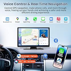 9" Portable Carplay & Android Auto Touch Screen, Wireless Car Stereo with 4K Dash Cam, 1080P Backup Camera, GPS Navigation, Mirror Link, Voice Control, FM, Siri, Bluetooth for All Vehicles