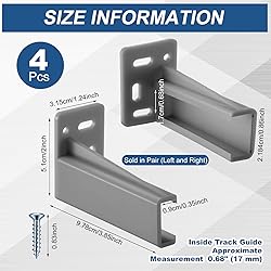 What You Get: 2 pairs of gray rear drawer track mounting backing plate brackets, sold in pairs, to meet your daily needs Overall Size of the Product: the overall size of the product is about 3.85 inches/ 9.78 cm long, 2 inches/ 5.08 cm high and 1.24 inches/ 3.15 cm wide; Its inner rail diameter is about 0.86 inches/ 21.84 mm Durable: made of sturdy plastic material to ensure long-term durability, each pair has a maximum load-bearing capacity of about 34kg/ 75 lb, suitable for stable support of small and medium-sized drawers, ensuring that the drawer track is stably and securely connected to prevent shaking or misalignment Compatibility Tips: these drawer rear track backing plates are applied to support the drawer slides installed below; These are not universal rear brackets and may not be suitable for all brands Easy to Install: use the included screws to install quickly and easily, no complicated tools are required, ready to install