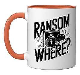 Funny Cyber Security Tech Support Hacker Ransomware Pun Ceramic Mug, Orange/White