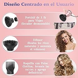 Tailored for Curly Hair Excellence: This 2-in-1 diffuser hair dryer is exclusively engineered for curly hair’s unique needs. Its diffuser disperses airflow gently, drying each curl without disrupting its natural pattern. Unlike regular dryers, it preserves curl definition, boosts bounce, and minimizes frizz, locking in moisture and enhancing curl elasticity. Whether you have loose waves or tight coils, it helps achieve salon-worthy, long-lasting curls easily. 1875W Powerful & Lightweight Design: Boasting an enhanced 1875W power, this curly hair diffuser delivers ultra-efficient and fast drying for curly hair, cutting down styling time significantly. Despite its strong performance, it weighs only 539g, equivalent to a bottle of mineral water. This lightweight build ensures comfortable handling during use, preventing arm fatigue even for extended styling sessions. 2-Speed & 3-Temperature Controls: Our hair diffuser dryer offers three clear settings for curly hair: 1) Low Temperature + Low Speed, 2) Medium Temperature + High Speed, 3) High Temperature + High Speed. Each combines targeted heat and airflow to balance efficiency, care, and styling control, meeting diverse drying needs effortlessly. Ionic Technology for Less Frizz: Frizz is a major hassle for curly hair—this diffuser dryer solves it with 10 millions of negative ions released during styling. The ions neutralize static, tame flyaways, and lock in natural moisture, leaving curls silky-smooth, bouncy, and manageable. It cuts down dryness and breakage for long-lasting, healthy-looking, frizz-resistant curls. 2-in-1 Dryer for Curly Hair Mastery: Equipped with a diffuser for gentle, curl-preserving drying and a wide-tooth comb that effortlessly detangles knots while lifting roots for voluminous, natural styling. The two accessories are easily interchangeable, allowing you to switch between drying and styling your curls seamlessly, all with one tool—making it a convenient, all-in-one solution for your curly hair care routine.