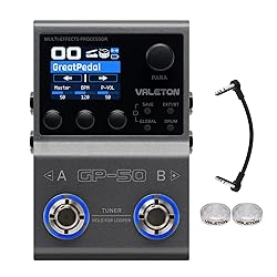 - Valeton GP-50: Your Ultimate Compact Tone Partner In the relentless pursuit of the perfect balance between professional-grade tone and ultimate portability, Valeton presents the GP-50. This powerful multi-effects processor and NAM/IR loader inherits a legacy of classic design, packing studio-quality sound into a compact stompbox that seamlessly integrates into any setup. Unleash Your Sonic Creativity Whether you're a gigging musician, a bedroom producer, or a session player, the GP-50 adapts to your needs. Use it as a primary multi-effects processor harnessing its 100+ meticulously crafted effects, or integrate it into an existing pedalboard as a dedicated amp modeler and IR loader. With support for loading third-party cabinet Impulse Responses (IRs) and Neural Amp Modeler (NAM) files, the possibilities for crafting your perfect tone are virtually endless. Key Features at a Glance: Triple-Threat Functionality: Acts as a Multi-Effects Processor, a Stompbox Controller, and a NAM/IR Loader. Massive Effects Library: Over 100 high-quality, organic effects built on HD digital modeling technology. Advanced Amp & Cab Modeling: Supports loading NAM files (comes with 50 curated files, store up to 80) and third-party cabinet IRs (store up to 20). High-Capacity Processing: Run up to 9 effect modules simultaneously in a flexible, re-orderable chain. User-Friendly Interface: A comprehensively redesigned interface with a 1.77-inch color LCD, knobs, and quick-access buttons for effortless editing. Extensive Connectivity: USB Audio: 2-in/2-out USB-C audio interface for recording and re-amping, compatible with Win/Mac/iOS/Android. BT Wireless: BT 5.0 for wireless audio playback and seamless editing via the mobile app. MIDI & Control: Supports USB MIDI and features 1/8" TRS jacks for MIDI IN/THRU. Connect expression pedals and external footswitches for expanded control. Built for Portability: Features a compact, rugged metal chassis and a built-in 1450mAh rechargeable battery for cable-free operation. Technical Specifications: A/D/A Converter: 24-bit high-performance audio Sampling Frequency: 44.1 kHz Patch Memory: 100 slots (55 factory patches) Input: 1/4" Unbalanced (TS) Output: Dual 1/4" Unbalanced Stereo (TS) Headphone Output: 1/8" Stereo (TRS) Power: DC 9V (center negative) or USB 5V Dimensions: 122mm (W) x 82mm (D) x 54mm (H) Weight: 430g The Valeton GP-50 is more than just an effect pedal; it's a powerful, portable studio and a dynamic live tool. Elevate your sound without compromise.