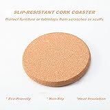 Quantity and Size:10 pcs cork coaster set, 3.94 inches in diameter, 0.39 inches in thickness. Sturdy and Non-slip:This cork for coasters has a thicker thickness, is strong and durable, and is not easy to crack, is great for engraving and also suitable for various DIY projects. Premium Natural Cork Material for Superior Protection:These cork coasters for drink are crafted from high-quality natural cork, offering excellent heat and cold resistance to shield your tabletops, countertops, and wooden surfaces from scratches, water rings, and stains. The porous cork texture absorbs moisture effectively, keeping your surfaces clean and damage-free. Functional Coaster Design:Each cork coaster features a smooth, flat surface that securely holds cups, mugs, glasses, and tumblers in place, preventing slips and spills. The lightweight yet substantial build ensures they stay put on your table, while the compact size makes them easy to stack and store when not in use. Practical Gifts:Whether you’re serving hot coffee, iced tea, cold beer, or a fancy cocktail, these cork coasters work perfectly for every beverage. Their classic, minimalist design complements any home decor style—from modern to rustic—making them ideal for daily use, dinner parties, or casual gatherings with friends and family. Perfect after-sales service: If you have any questions about our cork coaster, please feel free to contact us at any time. We welcome your inquiries.