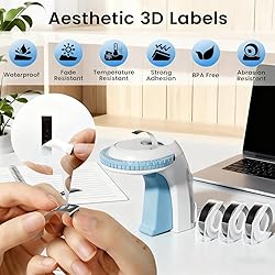 Embossing Label Maker Machine with Tapes, 3D Embosser Manual Labeler with 3 Rolls 9mmx3m Labels for Home and Office, White & Blue