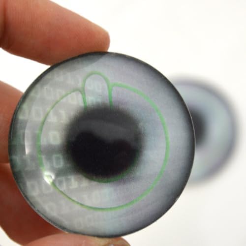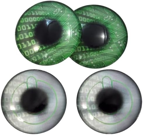 - GLASS EYES: Glass eye cabochons for jewelry making, sculptures, taxidermy, and other crafting projects. Two pairs of 40mm cyberpunk inspired glass eyes (1 Green Computer Code pair, 1 Tech Power Button pair).